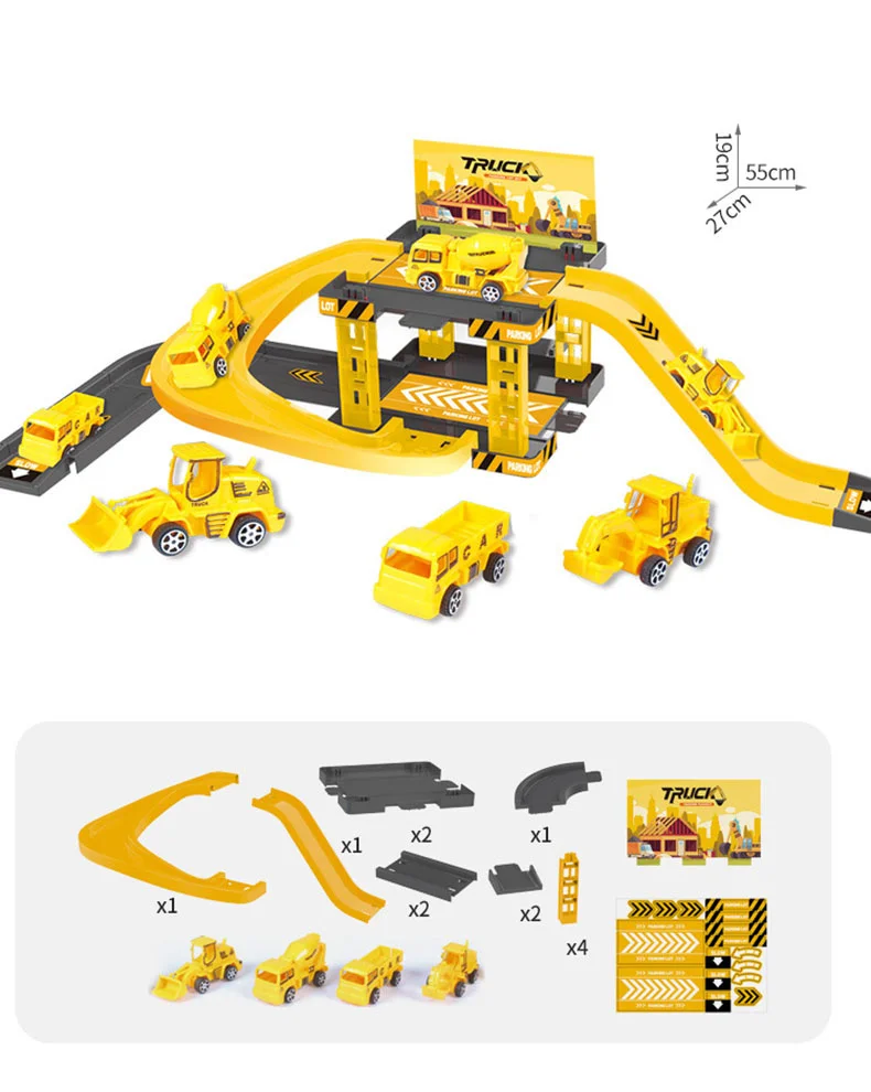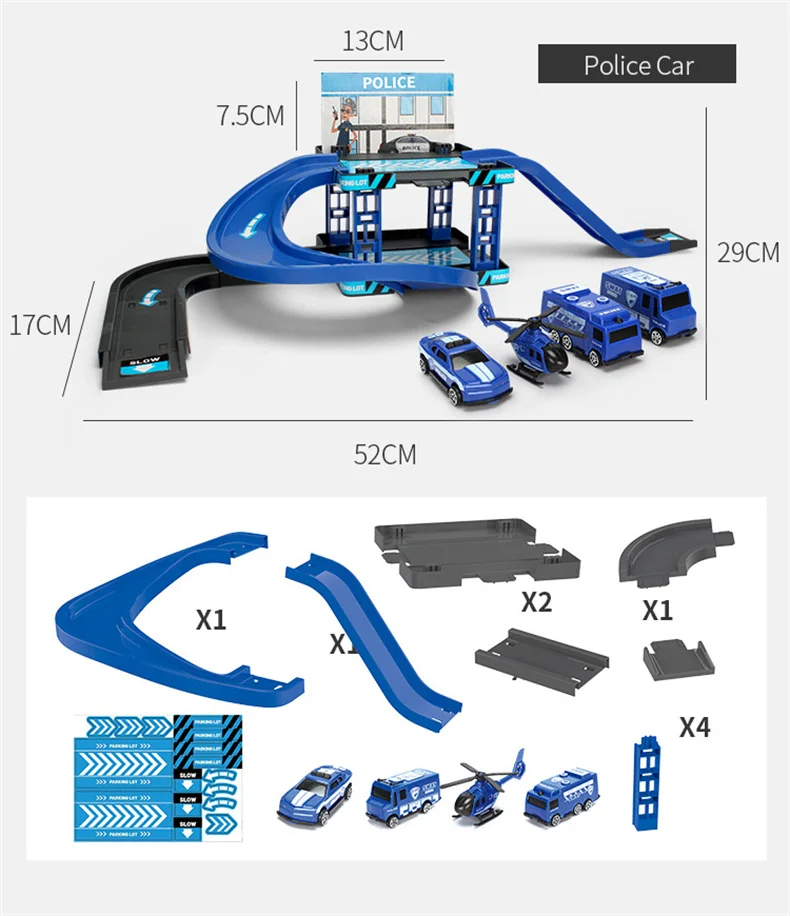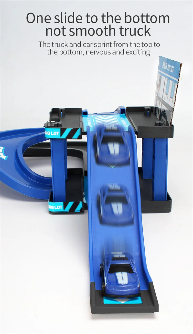 Children's Track Parking Lot Fire Truck Police Engineering Vehicle Dinosaur Car Toys Multi-Storey Car Parking Building For boys