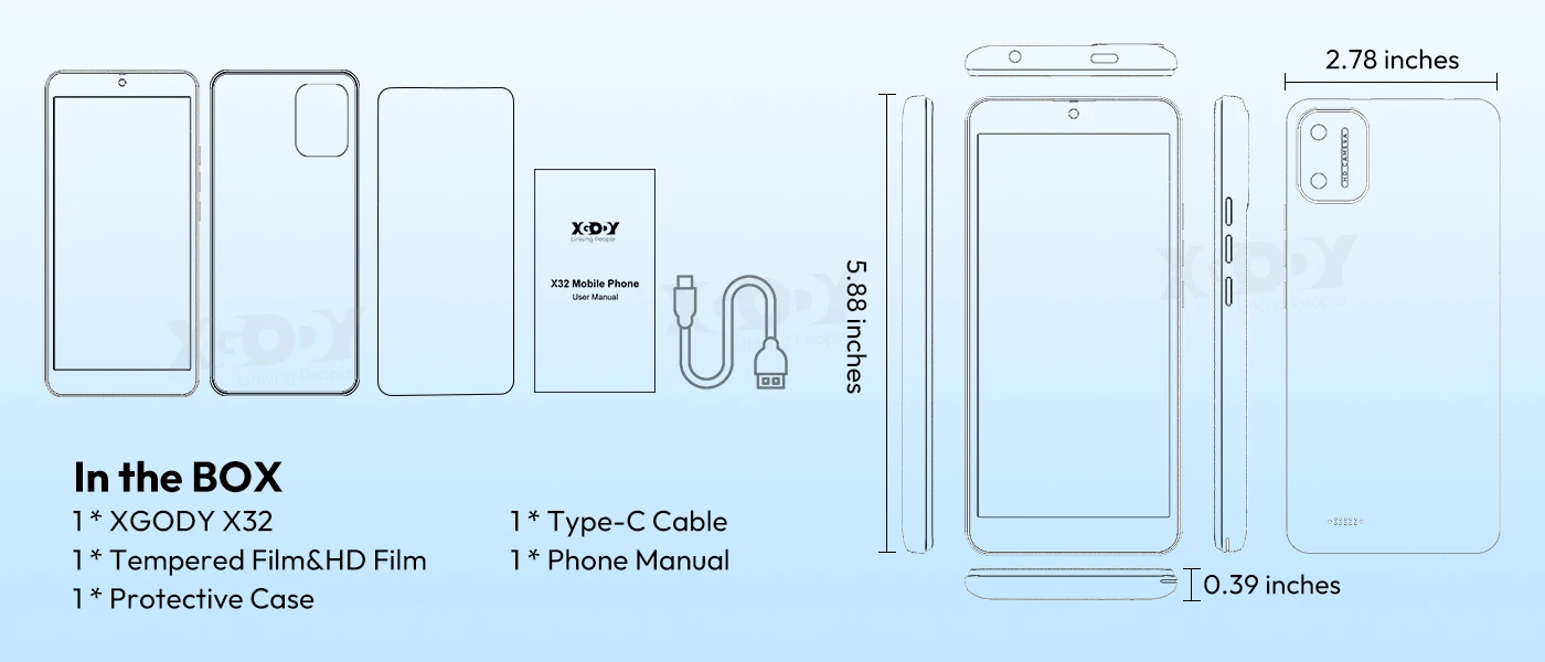[Powerful Octa-Core processor]XGODY X32 smartphone is equipped with an advanced Octa-core processor that brings you unprecedented speed and performance. Whether you are playing games, multitasking smoothly, or running video calls and demanding applications, the powerful Octa-core performance can easily handle it and make every operation run smoothly and seamlessly. You can enjoy extremely fast responses and ultimate experience anytime, anywhere.